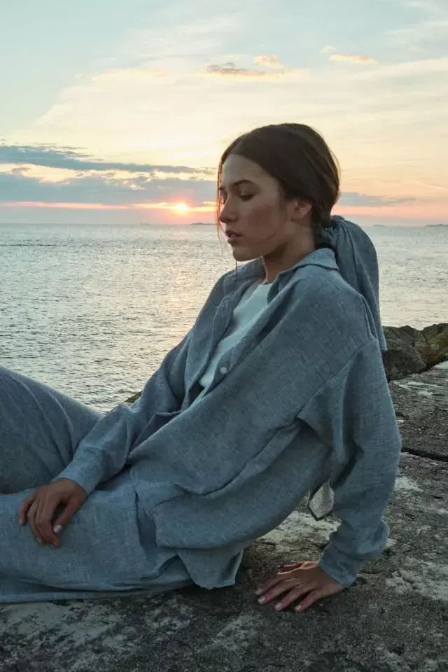 Camisa de lino japòn, calce suelto, con largo pronunciado en espalda.